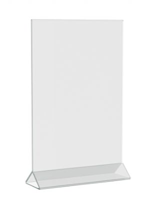Состоит из двух элементов: треугольного усиленного основания и планшета для листовки, с загибами для вставки в основание. Вся конструкция (оба элемента) прозрачная.