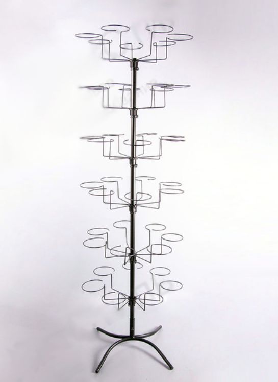 Стойка вращающаяся для любых видов головных уборов, вязаных шапок, шляп, меховых шапок. 6 ярусов вращаются на пластиковой втулке, которая держится на хомуте.